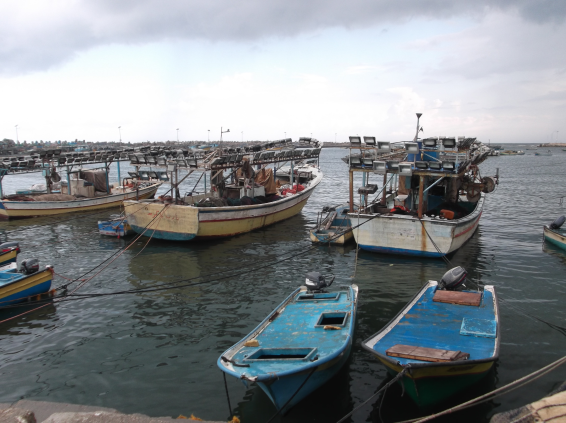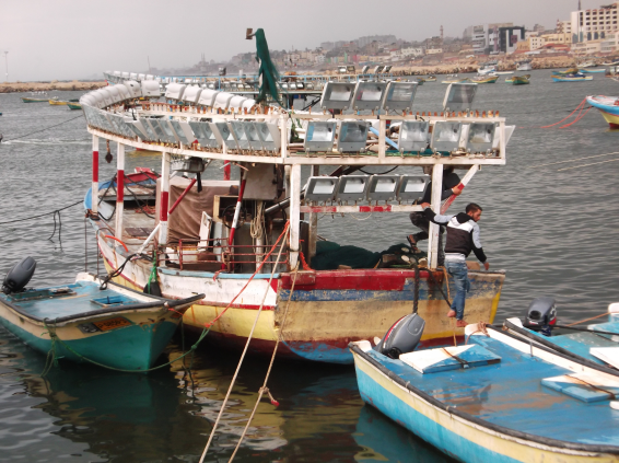 夜中に漁に出た船は明け方戻り、埠頭で仲買人に収獲を売り渡します。漁はイスラエルの規制で沖合6海里までしか認められておらず、沿岸漁業です。 |