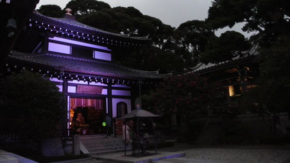 この二日ほど、今年の夏の暑さは何処に行ってしまったのかと思うほど涼しい日が続いています。ここ長谷寺では夕刻からLEDを使ったライトアップが行われ、参拝者が提灯を持ちながら境内を巡り、夕涼みのひとときを過ごすという鎌倉ならではの催し物が行われています(8月22日〜30日、日没から午後8時まで)。