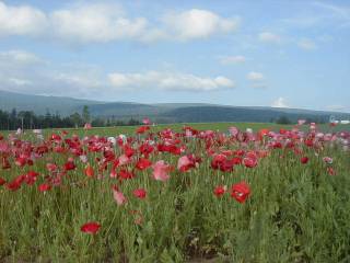さて富良野を後に、美瑛まで車を進めると、一面のジャガイモ畑が白い花を咲かせています。起伏のある畑が地平線にまで続き、その中にポプラの並木がすくっと立ち、さらにその向こうには、沈みつつある夕日が見えます。東京では想像もつかない美しい絵です。
