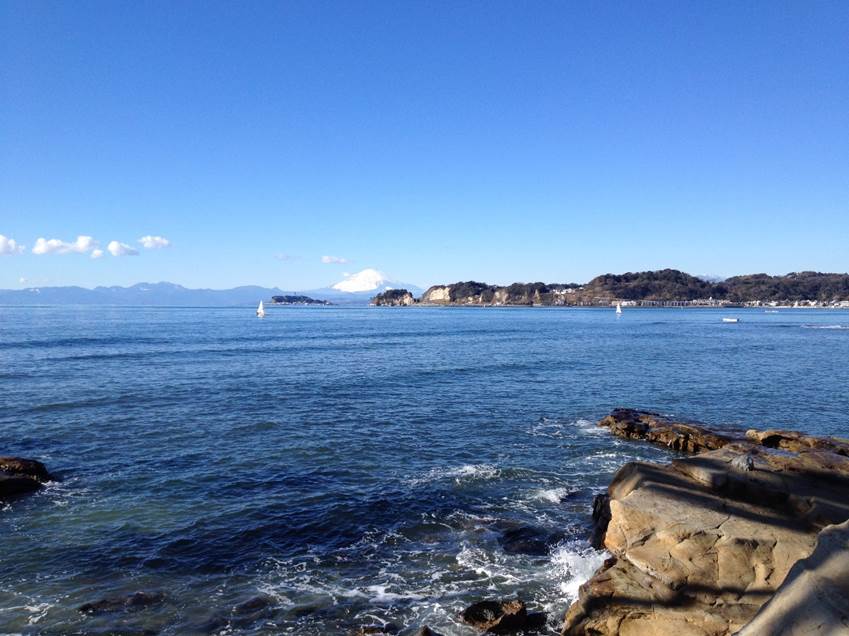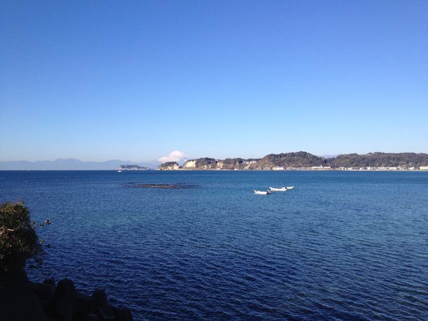 師走も残すところあと僅かとなりました。今年の冬は例年より寒いとの予報ですが、寒い朝の湘南は空気が澄みとおり、ここ逗子からは富士山の見える日が増えました。とりわけこの二日間は日中は風もなく、江ノ島と、その向こうには雪をたっぷりと被った富士山を望むことができました。家族連れが富士山を背景に記念写真を撮っている穏やかな年の瀬です。